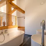 O design interior inclui sofá e TV e TV de tela plana com canais via satélite. O quarto inclui casa de banho separada, banheira e chuveiro, secador de cabelo e lençóis de banho.
